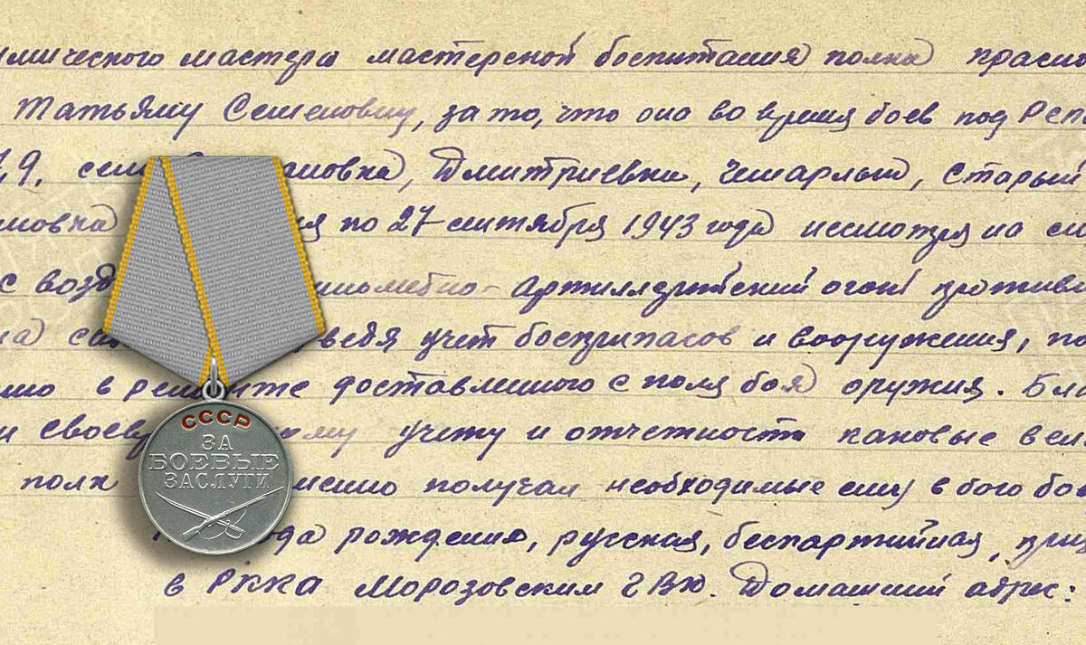 За эти бои наша землячка Татьяна Семеновна Марченко была награждена медалью «За боевые заслуги». В наградном листе указано, что она во время боев за высоту 277,9, села Степановку, Дмитриевку, Старый Крым, несмотря на сильную бомбежку с воздуха и минометно-артиллерийский огонь противника, не покидала своего поста, ведя учет боеприпасов и вооружения, помогала одновременно в ремонте доставленного с поля боя оружия. «Благодаря точному и своевременному учету и отчетности, каковые вела тов.Марченко, полк своевременно получал необходимые ему в бою боеприпасы».