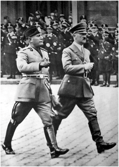 Б. Муссолини и А. Гитлер, лидеры итальянского фашизма и немецкого национал-социализма, г. Берлин, 1937 год. Фотография из открытых источников Яндекса.