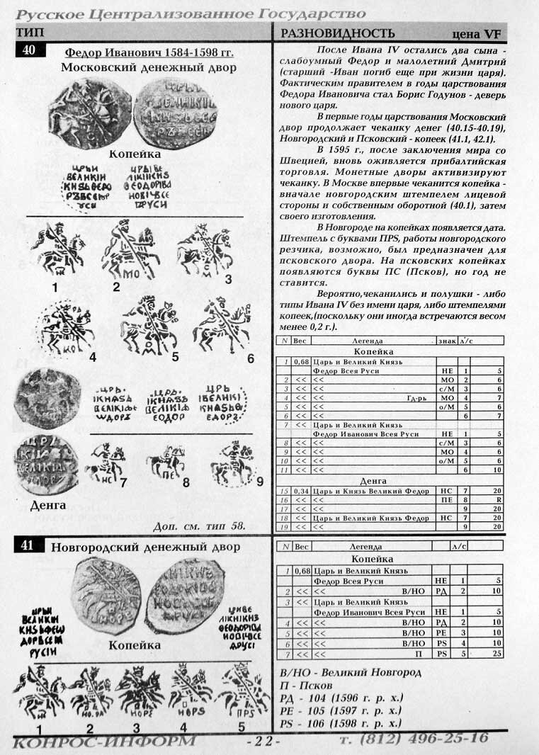 Известны обозначения трех разных лет на копейках царя Федора Ивановича: