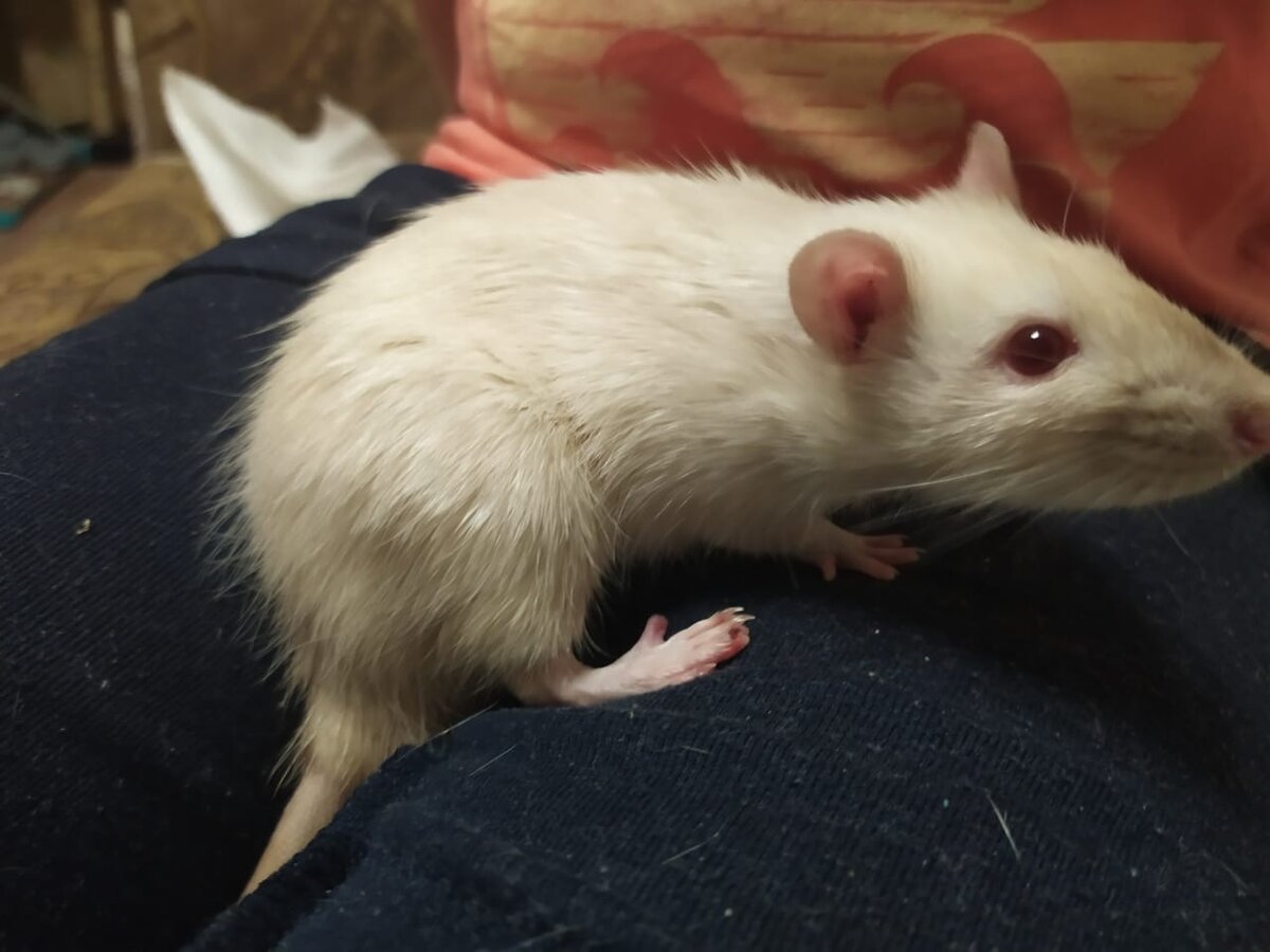 Буквально на днях у нас дома появился новый питомец. Расскажу вам, как это случилось. Мы с мужем работаем в зоомагазине, где кроме всего прочего продаются змеи. А еще у нас есть отдельное помещение, где мы выращиваем лабораторных мышей. Потому что жизнь - она такая, змейкам нужно что-то кушать. Отношение к этим мышам у меня устоявшееся. Это кормовые объекты. Ведь мы все едим курицу или рыбу? А этих мышей мы выращиваем на корм. Да, признаюсь, живых их кинуть к змее - у меня рука не поднимается, но в остальном отношение моё понятно. Это корм. Но вот пришла к нам женщина, которая купила где-то своей змее крысу. А змея не смогла съесть свой ужин. Крыса оказалась намного больше змеи. И женщина просит что-то сделать. Сама боится крысу ликвидировать. Муж поехал домой к этой даме. Забрал крысу, вымыл террариум, покормил змею мышками и приехал домой. Вызов был вечерний, поэтому спасенную крысу привезли домой. В отличие от наших мышек, эта крыса была питомцем. Она просто надоела своим хозяевам и