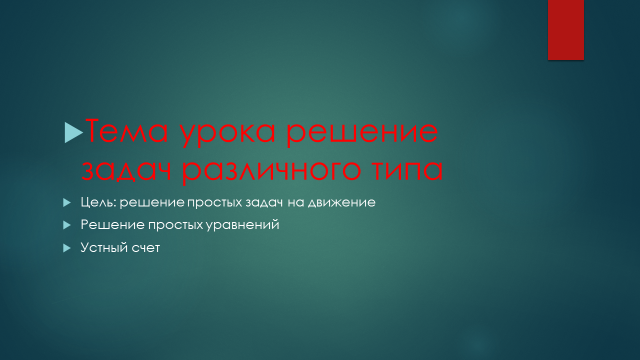 Математика 4 класс. Тема: Решение задач различного типа. Чтобы наша сказка продолжалась, найдите ошибки в примерах. По сюжету сказки первый подвиг кота это подношение подарка королю. Кот долго не мог поймать зайца. Но наконец то его усилия увенчались успехом.Вычисли с какой скоростью заяц убегал от кота. Чтобы представить сына мельника Маркизом Карабасом, кот придумал очередную хитрость. Он отнял у своего хозяина одежду и попросил окунуться в пруд. Король подарил сыну мельника новую одежду и пригласил его на прогулку. А кот тем временем помчался вперед. По дороге кот встретил рабочих, которые косили сено на лугу. Кот попросил рабочих сказать, что луга - это владения Маркиза Карабаса. Чтобы король поверил нашим рабочим, сравни величины. Кот подошел к замку людоеда. Кот поздоровался с Людоедом и предложил ему превратиться в маленькую мышку. Людоед сказал : " Реши задачи и я исполню твою просьбу" Схватил кот мышку и проглотил. А маркизу Карабасу достался замок Людоеда и все его владени