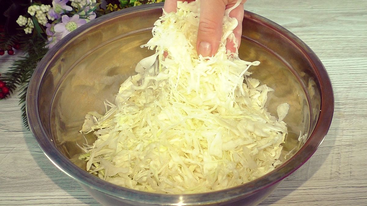 Если Вы любите заливные пироги, то тогда Вам стоит обязательно приготовить вот такие, очень вкусные "ленивые пирожки или кексы". Называть их можно по разному, главное получается очень вкусно. Готовится просто, можно одновременно начинать приготовление и включать прогреваться духовку. Рецепт: 4 яйца 150 мл. кефира 6 ст. л. муки 3 ст. л. растительного масла 0,5 ч. л. соды, 0,5 ч. л. сахара 0.5 ч. л. соли 350 г капусты 3-4 зубчика чеснока 100 г колбасы Для рецепта надо нашинковать капусту, сейчас сезон, готовим из неё различные блюда. Капусты потребуется ориентировочно 350 г. В капусту добавить щепотку соли и хорошо помять. Теперь я ещё добавляю 100 г колбасы. Колбасу, по желанию, можно брать копчёную или вовсе заменить на любое мясо. Так же выдавливаю несколько зубчиков чеснока, добавляю к капусте, перемешиваю и убираю в сторону. Духовку уже можно прогревать до 180 градусов. Теперь берём 4 яйца, добавляем соль, сахар. Количество соли в тесте будет зависеть от того, насколько солёная у Ва