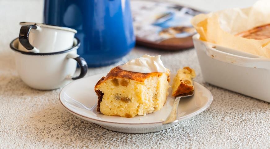 Высыпаем творог, яйца и сахар в одну посуду. Желательно что бы это была глубокая тарелка. Тщательно взбиваем полученную смесь.