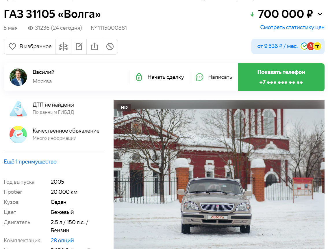 Приветствуем вас, друзья на канале Брискер Моторс. Сегодня хотелось бы рассказать вам о необычной Волге 31105 универсал, на которую мы случайно наткнулись на auto.ru осуществляя поиск "хорошей" Волги для нашего клиента в рамках услуги автоподбор под ключ.