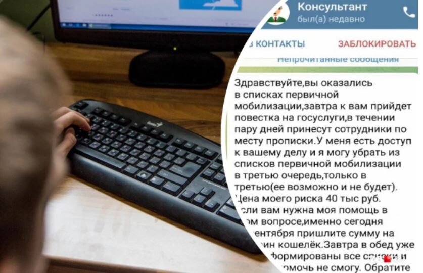 Жители Ярославля жалуются на странные сообщения, которые они стали получать от мошенников в Telegram, пишет 76.RU. Автором письма является некий «Консультант», который предупреждает получателя сообщения о том, что он якобы находится в списках первичной мобилизации, после чего призывает готовиться к получении повестки на «Госуслугах». Однако злоумышленники предлагают «перенести его в третью очередь, которой, возможно, не будет», ссылаясь на доступ к личному делу получателя. «Цена моего риска — 40 тысяч рублей», – говорится в послании. При этом средства необходимо перевести на биткоин-кошелек. На сайте «Объясняем.РФ» говорится, что повестку не могут направить через портал «Госуслуг», и она должна быть вручена лично в руки призывнику.