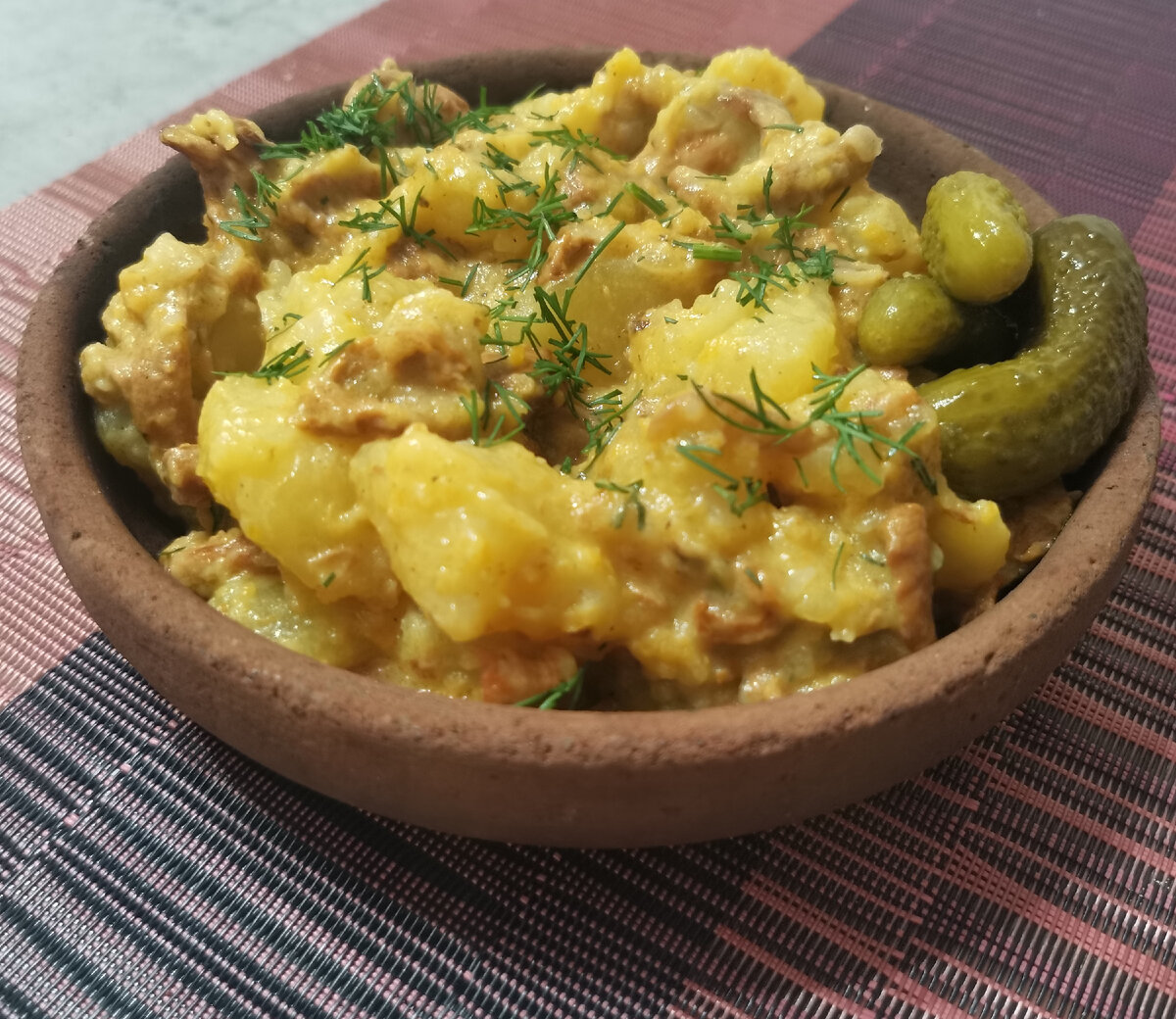 Русская кухня, просто и вкусно: "Тушёный картофель с лисичками в сметане".