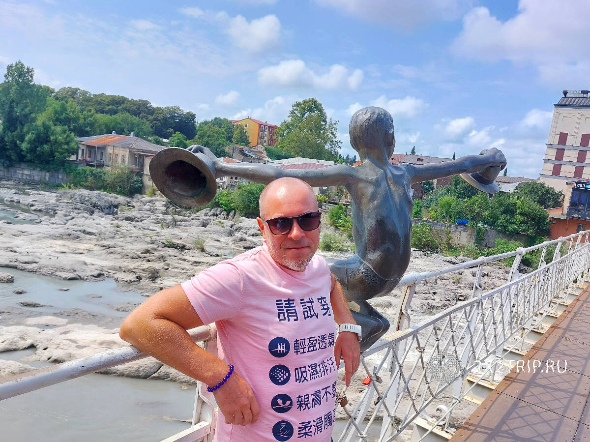 После, променад на Белом мосту. С него открываются красивые виды на белые камни реки Риони, на город и на канатную дорогу.