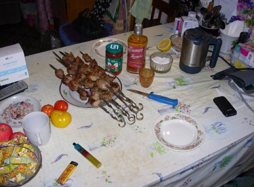 Имею право рассказать. Хотя бы потому, что это был единственный шашлык за весь сезон. То не было времени, то здоровья. Не было сил или желания. Или не было настроения, что очень часто случалось в этом сезоне. Но позавчера, перед поездкой в магазин, жена сказала: делаем шашлык. А я что? Могу быть против? Шашлык ведь всегда предполагает особое состояние души. И ощущение праздника даже тогда, когда не очень хочется. И такое мясо приходится очень круто запивать. Поэтому дураком надо быть, чтобы от такого счастья отказаться. Тем более, для меня приготовить его не составляет никаких проблем. Естественно, мясо маринует жена. И уважает только шею. Сплошное, без прожилок и внутреннего жирка мясо не годится. Хоть ты тресни, а получается сухим. И никакой запивашки для него не хватит, да и дело ведь не только в запивашке. Потом работаю я. Никакого мангала, у меня его никогда не было, только кострище. Лет ему, не знаю, сколько уже. Но, когда неподалеку от него я вырастил вишню, кострище это, вмест