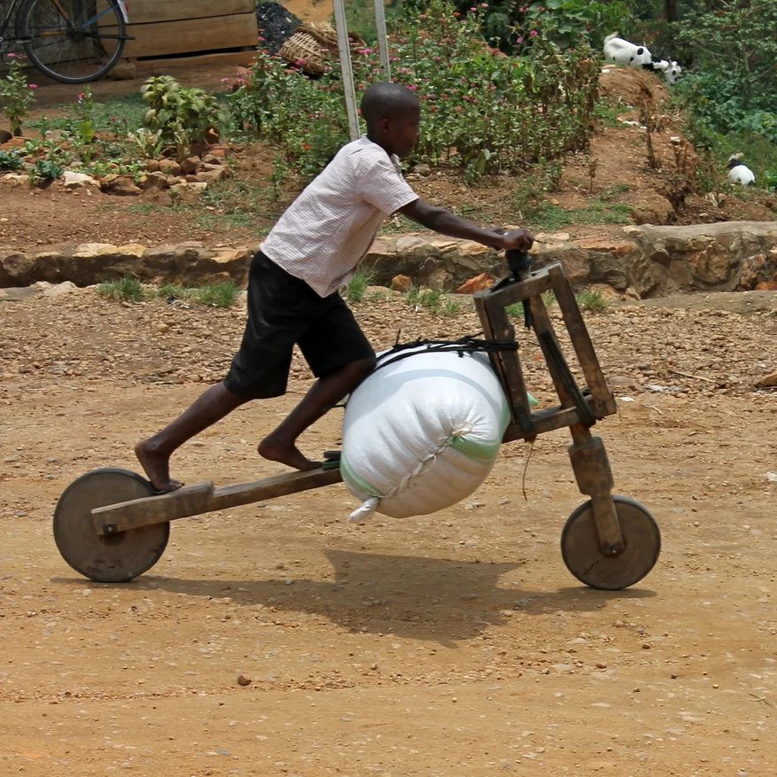 Всем привет, друзья! Электросамокаты, велосипеды, скутеры и мопеды - это все есть у нас. А как насчет хардкора? В Конго (Африка) местные рассекают на…деревянных самокатах чукуду, которые изготавливаются за пару дней и способны выдерживать до 800 кг нагрузки. А вам слабо? Так в чем же фишка, почему африканские "бомбилы" все еще используют эту технику? Давайте разбираться! Истоки “деревянного чуда” История рождения чукуду занимательная. Португалец Педро Сарракайо, которого нелегкая забросила в соседнюю с Конго Анголу в 1972 году устал видеть мучения аборигенов по перемещению тяжелых грузов при отсутствии средств механизации. Исходил португалец из того, чего в регионе много - дерева и физической силы. Вот почему первый образец самоката получился деревянным и крайне примитивным. Во-первых, Педро сделал его из того, что было на дворе, а, во-вторых, делал он образец для местных, которые ВУЗов не заканчивали. Аборигены новинку заценили. Дело ушло в народ, в процессе эксплуатации местные к