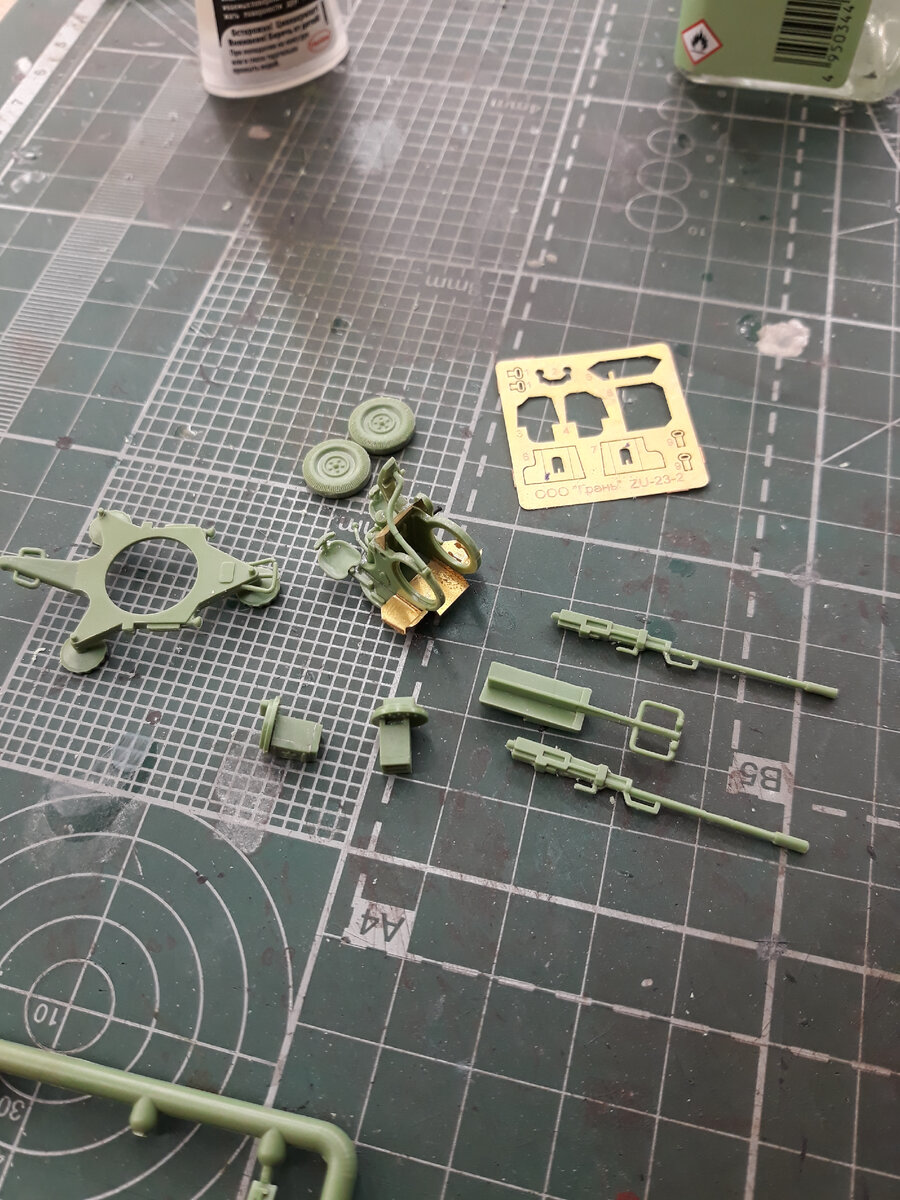 Продолжение истории о строительстве модельки "Тачанки" в предыдущей статье "Тачанка" (ЗиЛ-131 с ЗУ-23) 1:72 (часть 1) строительство освящен процесс строительства в данной части продолжаю строительство модельки. Доработка кузова. Установка рамы в начале кузова. 3. Сборка ЗУ-23 Набор зенитки - очень прост в сборке. особое внимание пришлось уделить стволам - они сильно кривые. возможно имеет слысл заменить из самодельными из игл от шприцов. 4. Покраска В особой подготовке к покраске нуждается только кабина, на стекла которой была нанесена жидкая маска (QM-04 Wilder) (Подготовка, покраска, смывка, декали, точки, пигмент) На все детали нанесен грунт (P17 Pacific88 Черный грунт (black primer)) Финальная сборка и нанесение эффектов Монтаж сетки 5. Итоги В целом мне понравилось, что получилось, но вспомнил, что я забыл сделать эффекты подтеков методом масляных точек, а потом подумал, что и так нормально смотрится).