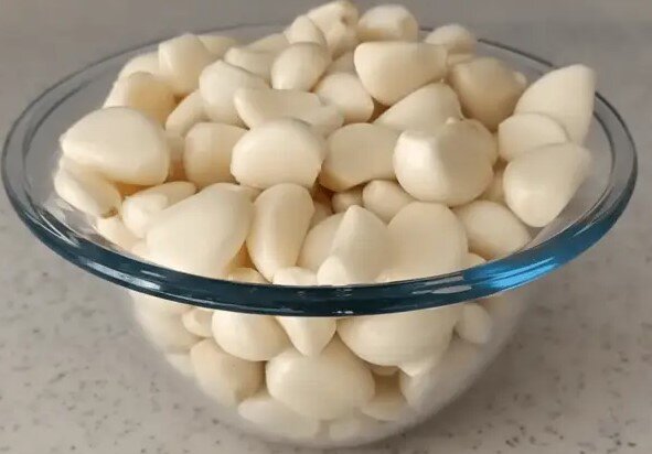Часто головки начинают усыхать гораздо раньше, и уже к декабрю-январю чеснок переходит в разряд дефицита. При этом существует отличный способ сохранить пряность без потери аромата и вкусовых качеств на любой срок. Очищаем чеснок и удаляем пленку. Гораздо легче снять ее, если замочить на полчаса в воде. В таком случае перед дальнейшей переработкой нужно дать зубкам полностью высохнуть. Отправляем подготовленные зубки в измельчитель, добавляем соль в 2 приема из расчета 40 г (2 столовые ложки без горки) на 1 кг чеснока. Соль можно использовать как каменную, так и морскую. Перебиваем содержимое измельчителя до состояния пюре. Застилаем противень пергаментной бумагой и равномерно распределяем чесночную массу по поверхности тонким слоем. Чем тоньше слой, тем быстрее чеснок высохнет. Летом сушить чеснок можно прямо на свежем воздухе. Для этого понадобится 2-3 солнечных дня. Высохший пласт поменяет цвет с белого на кремовый. Убедившись в том, что корж полностью высох, ломаем его на маленьки