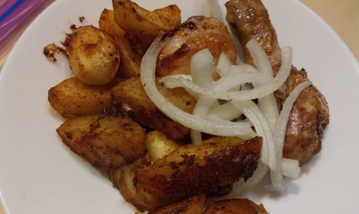 Куриные голени с картошкой в духовке. Сочные внутри, хрустящие снаружи