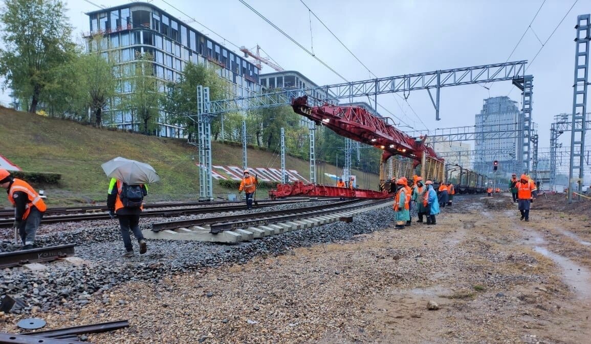 Специалисты нашей Компании произвели переключение III-го главного пути Киевского направления МЖД на временную ось движения. За 26 часов технологического «окна» строители выполнили устройство земляного полотна, уложили 800 м пути, смонтировали контактную сеть и устройства СЦБ.