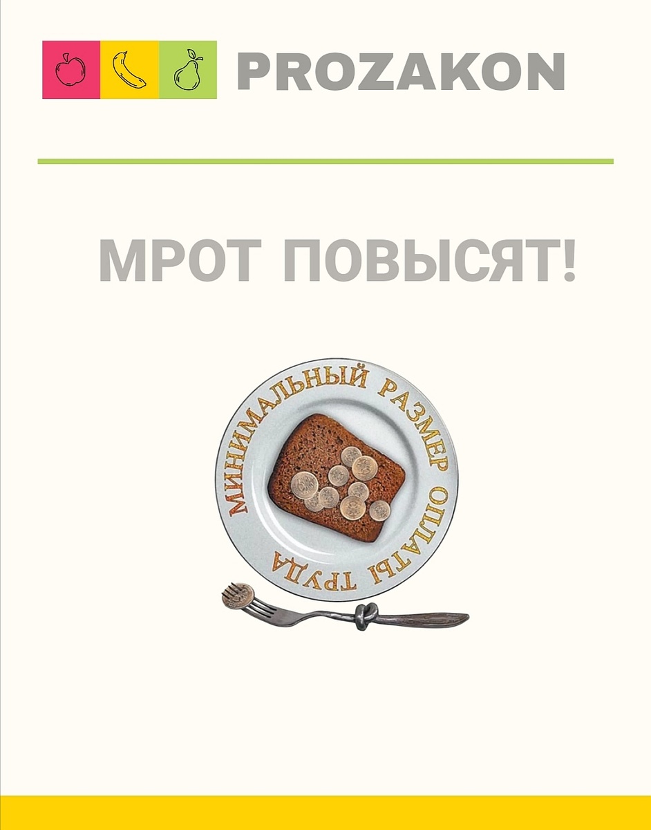 В 2023 году минимальный размер оплаты труда (далее - МРОТ) увеличится до 16 242 руб. Об этом сказано в Информации Минтруда России от 22.09.2022. Министерство труда России подтвердило, что Правительство РФ поддержало повышение МРОТ со следующего года до 16 242 руб. Проект уже внесли в Государственную Думу РФ в составе актов бюджетного направления. Минимальный размер оплаты труда уже повышался в 2022 году и с 1 июня равен 15 279 руб. Как Вы относитесь к повышению МРОТ? Как это скажется на жизни граждан России? Пишите свое мнение, будет интересно почитать. Подписывайся, дорогой читатель! #закон #право #мрот #труд #трудовойкодекс #трудовоеправо #трудовыеотношения #зарплата #минтруд #prozakon
