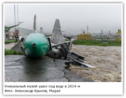 Во время июльского наводнения 2014 года музей военной техники практически смыло в реку: рухнули стальные опоры, танки и самолеты, радиолокационная станция, спортивные тренажеры. Всем им был нанесен большой ущерб, однако часть экспонатов была восстановлена.