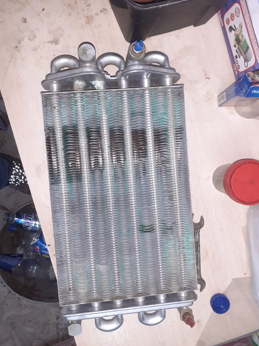 Очень часто многие считают, что промывка теплообменника котла спасает даже при самом плачевном состоянии теплообменника. Как бы сильно он не был забит его в любом случаи можно промыть. Чуть больше кислоты, чуть дольше его подержать. И все теплообменник промыт. Ставим, запускаем, и ура он работает. Извините я вас огорчу. Не всякий теплообменник можно промыть. Бывают, такие попадаются, что промывка бесполезна. Да и вообще сама промывка как профилактическая мера, как техническое обслуживание очень хорошо. Но как ремонт забитого теплообменника, процедура очень сомнительная. Обычно хозяин котла пока котел работает даже и не задумывается, что котлу надо провести техническое обслуживание. Что нужно пригласить специалиста, проверить техническое состояние аппарата, промыть теплообменники. А вспоминает про это когда возникают проблемы, котел начинает не адекватно работать, греметь, трещать, плохо греть отопление и воду. Когда такая ситуация возникает в большинстве случаев теплообменник уже наме
