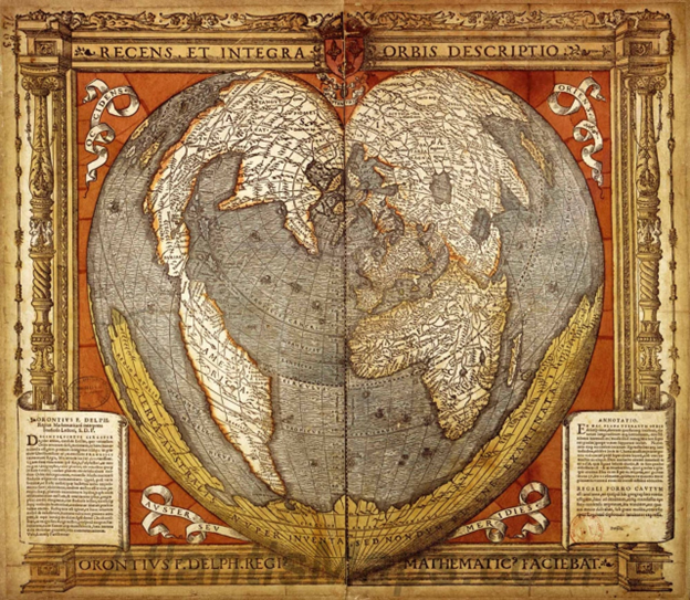 Карта Оронция 1531 год карту мира, на которой полностью изображен материк Антарктида, с горными хребтами и реками, свободный ото льда. Скорее всего он перерисовал её с более древней карты. Но в любом случае, конфигурация материка соответствует современным картам Антарктиды.