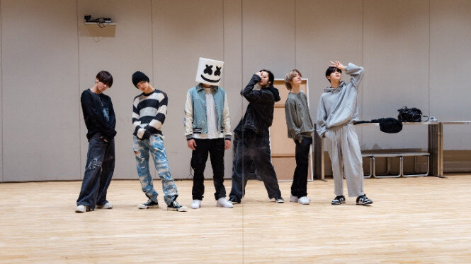 У фанатов появились надежды на сотрудничество Marshmello и TXT после их встречи в сеульском офисе HYBE. 25 сентября американский диджей и продюсер EDM Marshmello в своих официальных социальных сетях поделился фотографиями, сделанными во время его недавнего визита в офис HYBE в Сеуле, где он провел время с участниками TXT. На фотографиях Marshmello позирует с участниками на диване, а также в одной из комнат для занятий, которую легко узнать по хореографическим видео группы. «Повеселился с моими друзьями TXT», – написал он. Участники группы ответили через свой аккаунт: «Мы приятно провели время. До скорой встречи!» После этого взаимодействия фанаты начали размышлять в социальных сетях о целях визита Marshmello, и многие предположили, что в планах есть музыкальное сотрудничество между артистами. Фанаты прокомментировали: «А? Круто… Marshmello?», «Вау, не могу поверить, что это TXT и Marshmello», «Что? Они встретились с Marshmello? Надеюсь, это будет бомба». Marshmello также утвердительно