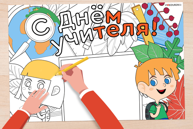 Большая раскраска и весёлое видео ко Дню учителя. Поздравляем с праздником!