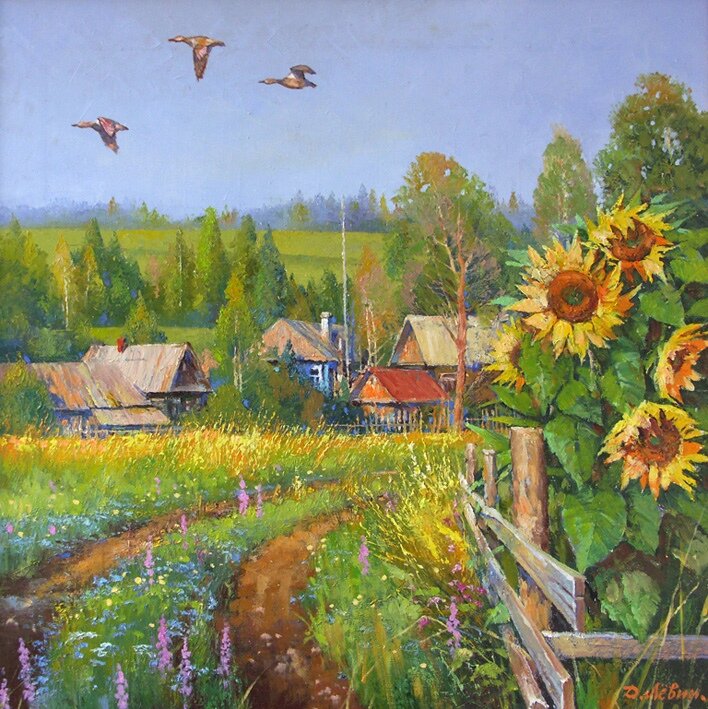 Деревенское настроение в картинах Дмитрия Левина. Родился художник в 1955 году в г. Моршанске. Окончил Пензенское художественное училище им. К.А. Савицкого ( отделение живописи ) в 1976 году. Член Творческого союза художников России, Международного художественного фонда, Федерации Профессиональных художников Дмитрий Левин признанный мастер русского пейзажа, зарекомендовавший себя как талантливый представитель русской реалистической школы. Важнейший источник его искусства – привязанность к природе, которую он нежно и страстно любит и, частью которой себя ощущает. Легкие по восприятию картины наполнены глубоким смысловым содержанием. Каждая его работа пронизана чувством убедительной достоверности. Источник: http://www.levin-art.ru/