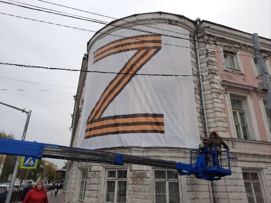 В Ярославле произвели замену испорченного баннера с символом спецоперации, который висел на Доме офицеров.