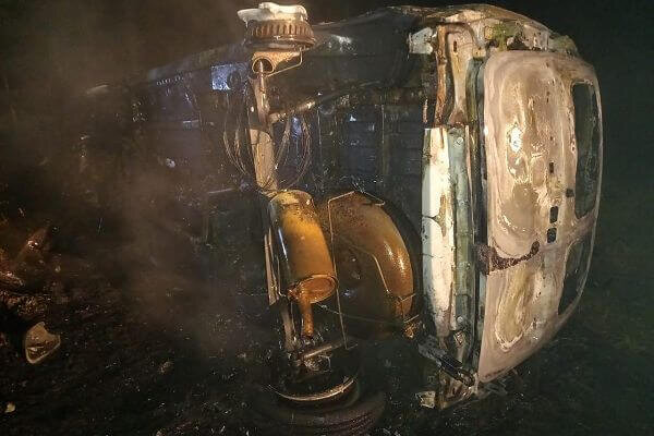 На трассе в Самарской области опрокинулся и сгорел «Ларгус»