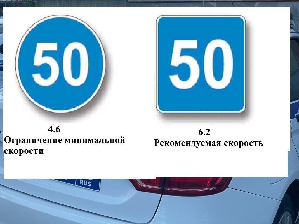 Многие водители могут путать значение двух похожих дорожных знаков связанных со скоростным режимом. Так водители часто путают значение дорожного знака 4.6 «Ограничение минимальной скорости» с значением дорожного знака 6.2 «Рекомендуемая скорость».