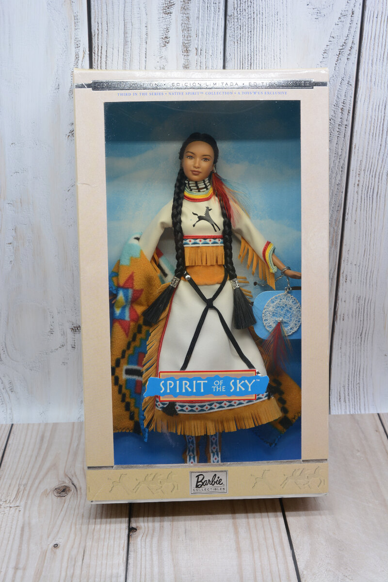 Долго лелеяла мечту поселить у себя линейку таких прекрасных кукол, как Дух Неба, Дух Земли и частично Дух Воды. В итоге смогла купить в январе аж двух из трёх! Начну с Духа Неба. Я приобрела её НРФБ, хотя обычно предпочитаю брать кукол без коробок. Для меня это излишний мусор. Не фиксирую на фото и видео, как дербаню коробки, а то когда-нибудь заядлые коллекционеры меня выследят и посадят в тюрьму за варварское отношение к коллекционным вещам. :D Интересно, что в этот раз описание на коробке аж на трёх языках — английском, испанском и французском. Хотя я точно уверена только в английском, остальные мне кажутся испанским и французским) Выпущена такая красота была в 2003 году, поэтому тело соответствующее — не песочные часы, а просто худенькое. Есть молдированные "пупырчатые" трусы. Наклейки на коробке уже и не клеятся даже — всё высохло) Кукла великолепна, конечно. В ней чувствуется стойкость, уравновешенность и мудрость. Хотя она относительно молодая) Её лицо будто в белом налёте како