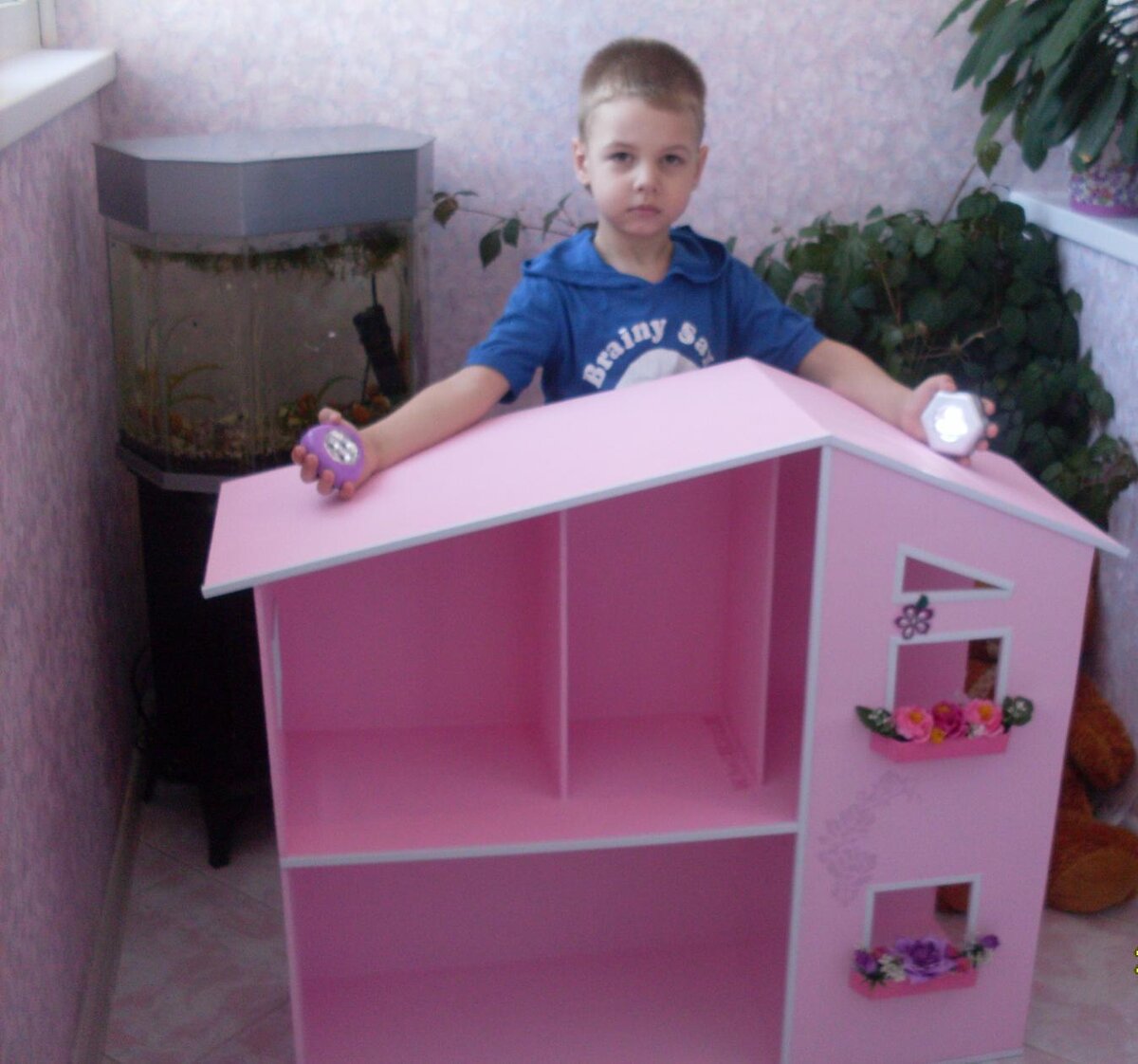 Меня зовут Александра, а на фото мой сыночек Артём. Он и стал идейным вдохновителем и главным помощником по созданию кукольных домиков. Свой первый домик для динозавриков Артём смастерил из коробок, оборудовал светильниками и каждый вечер подолгу играл, я присоединялась)) повесила в картонный дом шторы и расставила мебель. Решила сделать дом прочнее к Дню рождения Артема, в интернете рассматривала модели. И вот они домики из фанеры. Самый простой чертёж немного доработала👌 Купила: В подвале у родителей начертила детали, муж помогал пилить) Для сборки понадобились: Когда клей просох, тщательно прошла домик наждачной бумагой. Дальше творческий процесс, понадобились: Если вам интересно какую именно краску лучше использовать, где приобрести подходящий валик, пишите всё подскажу 😉 И чертёж скину. Домик получился не маленький💪 А дальше пошли заказики и ассортимент стала расширять. Детские кухни, кроватки для кукол... Обо всём подробнее дальше, оставайтесь с нами. Всех обняла🤗