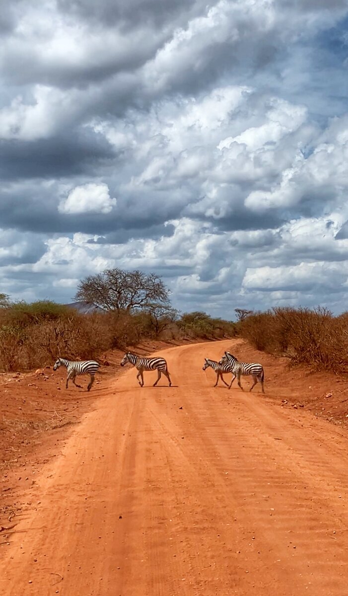 Два последних посещенных нами парка в Кении были Восточный и Западный Тсаво (ну или Цаво). Это небольшие парки и животных там немного, но сами парки очень красивые. Западный Тсаво - это километры красной дороги, которую мы просто не могли остановиться снимать. Всё казалось, что вот тут она еще красивей, чем 10 метров назад и нужно обязательно запечатлеть😀. А как красиво на фоне красной дороги смотрятся зебры.