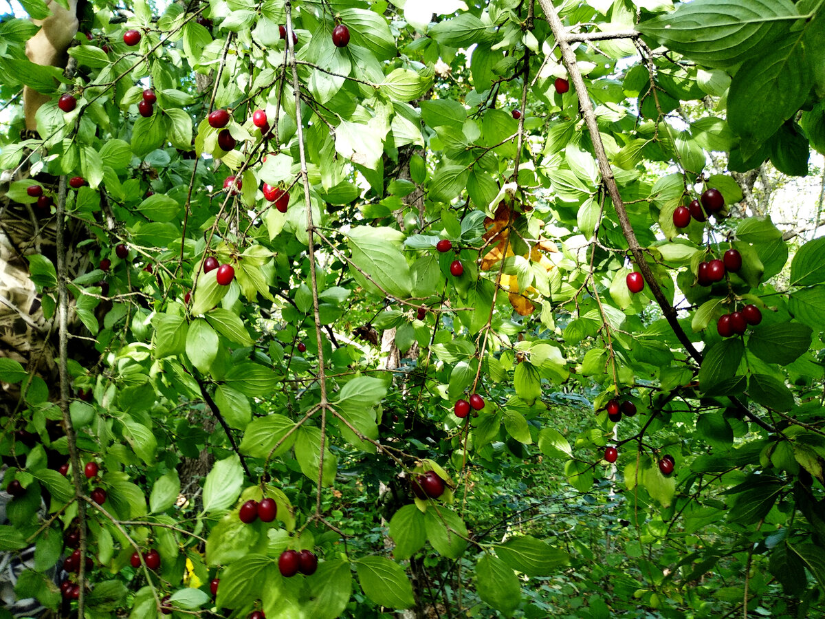 Такое время, что хочется убежать ото всех подальше... И порой от себя... Вот только от себя не надо... лучше взять себя за шкирку и на природу. Знаете, где шкирка находится😃? Например, за поспевшим в наших краях кизилом. Вообще-то мы выбрались по грибы, но не нашли ни одного, спрятались иль не выросли ещё... Лето выдалось сухим в Анапе, а конец сентября ещё и по-летнему жарким, до +26. Зато набрели на заросли кизила. Мало кто видел, как растет, цветет кизил и не каждый пробовал эти сочные, сладкие с легкой кислинкой ягодки рубинового цвета, когда они совсем спелые. Садовый поспевает раньше, дикий к концу сентября, хотя цветет кизил раньше всех плодовых. А созревает позже всех. Потому кизил ещё зовут шайтановой ( чёртовой) ягодой. Ещё кизил считают мужской ягодой, ягода полезна для здоровья всех, но мужчин особенно. Придает ту самую силу и избавляет от разных мужских недугов. Не верите...? Проверьте... Употреблять кизил можно с косточкой, если съесть немного. Да-да, косточка кизил