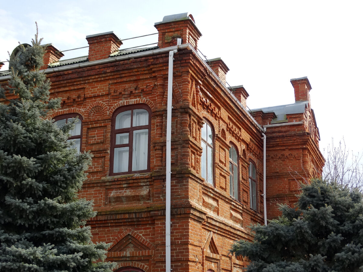 В городе Волжский (город-спутник Волгограда) трудно найти старинные дома. Город очень молодой, он был основан в 1954 году. Однако это не значит, что у него короткая история и на его территории нет старинных зданий. В старину на месте Волжского стояло село Безродное или Верхняя Ахтуба. Сейчас его территория фактически ни чем не занята, хотя формально и включена в городскую черту. Здесь и было построено в своё время кирпичное здание школы, сохранившееся до нашего времени. Сама школа располагалась в верхнем этаже, а в нижнем было сельское правление. Дата постройки здания — 1881-й год, хотя некоторые источники указывают на то, что оно ещё на 40 лет старше. Изначально это была начальная школа, потом во времена Сталинградской битвы из школы сделали военный госпиталь, а близлежащую территорию использовали под кладбище для умерших в госпитале солдат. Там на набережной похоронены герои Гражданской и Великой Отечественной войны. В 1972 году при пожаре, вся деревянная планировка внутри здания бы