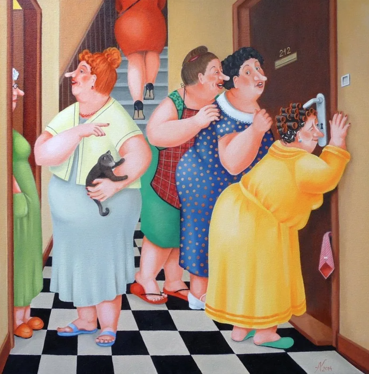Через некоторое время к подруге заехал ее жених. Соседка проведала и про него, не стесняясь в вопросах. А как-то раз, идет подруга с работы, а на лавочке сидит соседка. Как стало ясно, она ее дожидалась (ведь хорошо знает расписание).