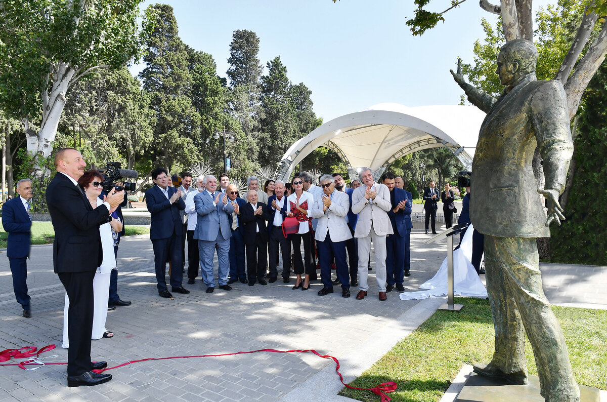 После торжественных и искренних слов настал черед собственно открытия памятника. Президент Ильхам Алиев снял покрывало, и все увидели певца, запечатленного в момент исполнения одной из его песен, когда он весь – порыв и вдохновение.