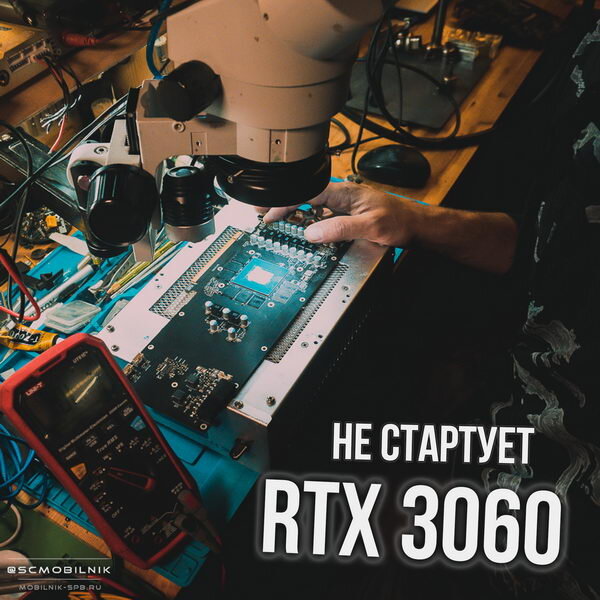 Как всегда попала жидкость с водяной системы охлаждения в ПК, материнка пострадала меньше, больше досталось видеокарте. Да, это уже не первая видеокарта и не первая материнская плата, которая получила дождя от "водянки". А жидкость на работающем ПК стреляющая в разные стороны это по настоящему беда. И как правило не очень простой ремонт, а иногда и дорогостоящий. Заказчик обратился к нам через знакомого, молва о нашем сервисе нередко передается по "сарафану" или чаще приходят напрямую с youtube или через сайт. Однако, видяшка уже побывала в руках другого мастера и поступила уже разобранной с винтами в спичечном коробке. Там мастер не разобрался. Приступая к ремонту, по опыту сложились уже определенные алгоритмы действий и этапы. Итак, 1 этап. Разбор RTX3060. Собственно, чтобы добраться до всех элементов платы, любое устройство нужно разобрать. 2 этап. Замеры основных сопротивлений. Здесь самое важное - определить ремонтопригодность. Примерно. И задать себе вопрос, а стоит ли этим заним
