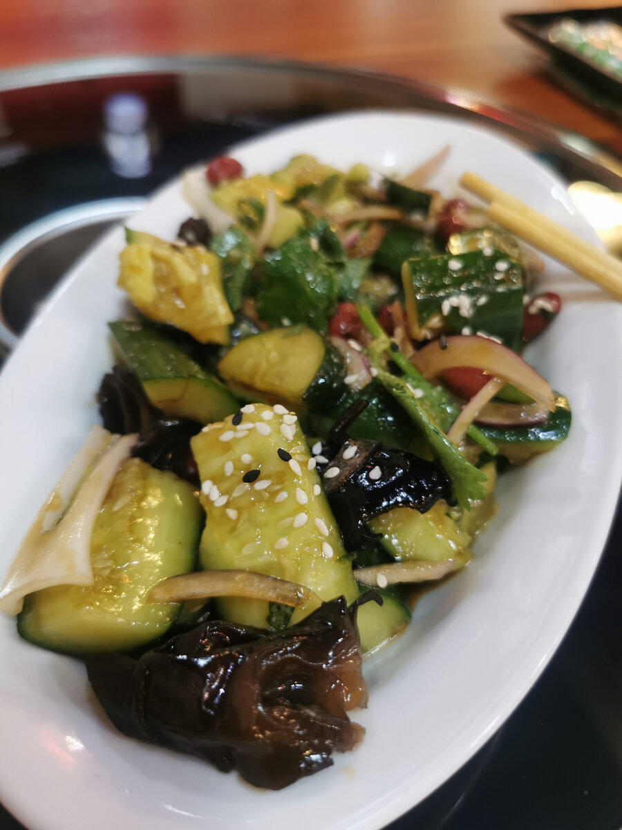 Резюме: невкусно, малоаутентично, недешево, дважды услышала отчетливый вкус плесени в битых огурцах (орехи, скорее всего), зал пустой, отзывы явно накрученные (филологически забавные, рекомендую) CVC относительно недавно открылся, и 2/3 блогов, на которые я подписана, его похвалили. А я видела его еще раньше блогов (топала в Киоск), и идентифицировала это как дерьмище – просто странно, что в центре.