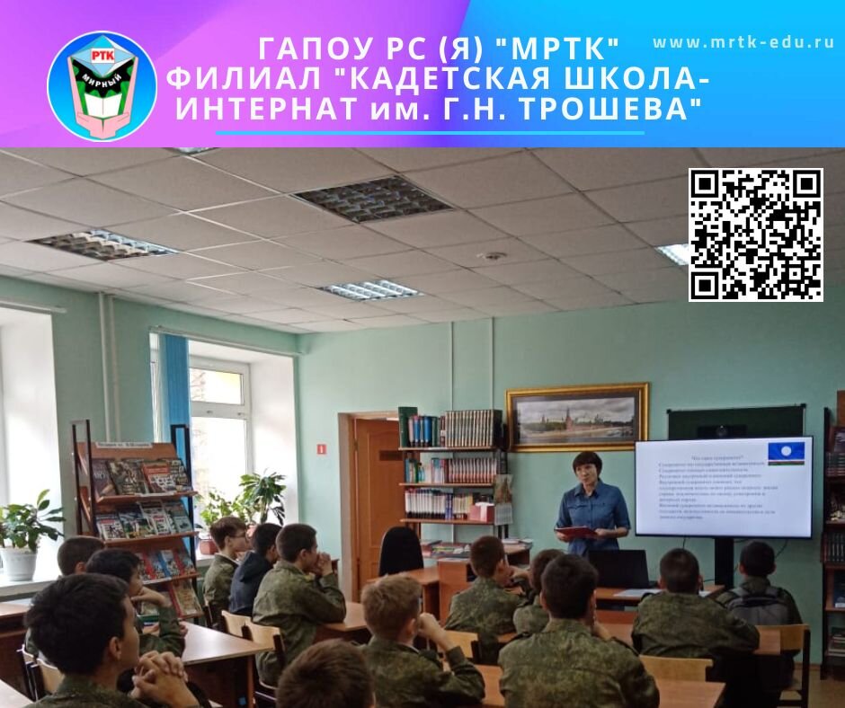 Библиотекари из Межпоселенческой информационно-библиотечной системы рассказали кадетам «КШИ им. Г.Н. Трошева» о государственности Якутии.