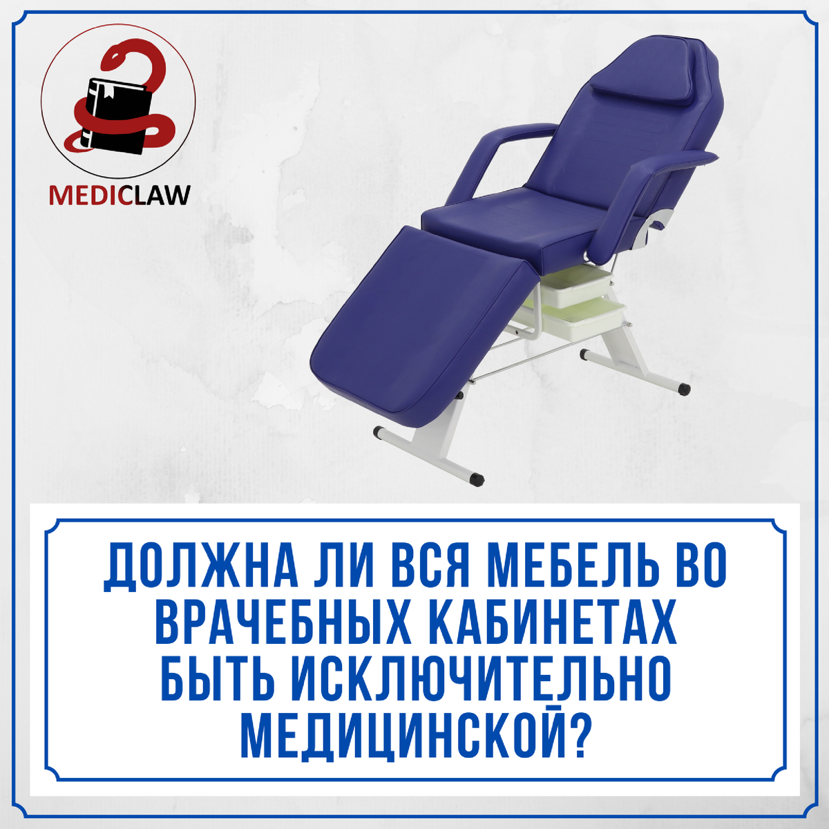 🔹Один из частых вопросов, возникающих у руководителей медицинских организаций, связан с необходимостью оснащения врачебных кабинетов так называемой медицинской мебелью. Но правда ли она обязательна?⠀ 🔹В пункте 4.7 СП 2.1.3678-20 указано, что в лечебных, диагностических и вспомогательных помещениях (кроме административных и вестибюльных) должна использоваться мебель, выполненная из материалов, устойчивых к воздействию моющих и дезинфицирующих средств. То есть требование иметь именно медицинскую мебель отсутствует.⠀ 🔹Однако, говоря о конкретных видах деятельности, нужно руководствоваться стандартами оснащения кабинетов, как более профильными нормативными документами. ⠀ 🔹В частности, в косметологии, согласно приказу Минздравсоцразвития России от 18.04.2012 № 381н в стандарт оснащения кабинета врачебного приёма, манипуляционного кабинета, процедурного кабинета и так далее входит понятие «Мебель медицинская». То есть в данных кабинетах возможно применение мебели только с регистрац