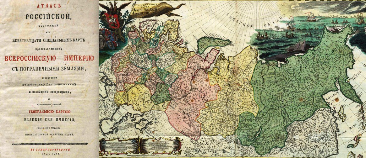 Одним из важнейших и незаменимых пособий для России 18 века являлись географические карты. Важность эта легко объяснима – даже в то время территория страны была уже огромной, и порой без карт было не обойтись. Самыми точными и крупными собраниями картографическими произведениями той эпохи являлись атласы. Именно тогда, в 18 веке, они и появились на территории России, хотя работы над самими картами велись уже давно, как минимум с 16 века. Если обращаться к истории географических карт в России, то первые попытки создать их проводились при Иване Грозном. Тогда, в 1552 году, по его поручению была начата работа по написанию чертежа Московского государства. Но более-менее четкие карты все равно стали появляться сильно позже – в 17 веке. Если же говорить о картах, максимально приближенных к сегодняшним, то их история в России ведется с правления Петра I. Первый атлас, собрание нескольких карт, который назывался “Атласом Российским”, увидел свет 13 сентября 1745 года. Его первая редакция была