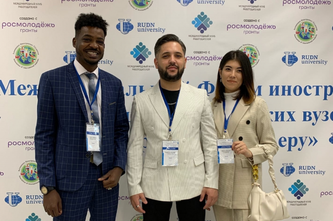 Студенты ВятГУ Элсаид Бабикер, Хайдар Халил, Нуржанов Исломжон, Бинаева Дилдора и Бозоров Довуджон съездили в Москву на Межрегиональный Форум иностранных обучающихся российских вузов «Построй свою карьеру». Форум проходил с 21 по 23 сентября в РУДН. Всего в форуме приняло участие более 500 иностранных выпускников российских вузов и более 20 компаний-партнеров, а также Минобрнауки России и Федеральное агентство по делам молодежи. Студенты участвовали в мастер-классах от «Яндекса», OPPO, Teleperformance и других крупных компаний и узнали о возможностях трудоустройства иностранцев на стенд-сессиях. Еще они пообщались с выпускниками РУДН, которые уже много лет успешно работают в России, и получили много полезных советов и знакомств. Одно из таких знакомств, возможно, станет знаковым: наши студенты поговорили с руководителем проекта «Построй свою карьеру» Исса Шаабо, который также является Первым Заместителем президента Ассоциации иностранных студентов (АИС) России. 19 сентября иностранные