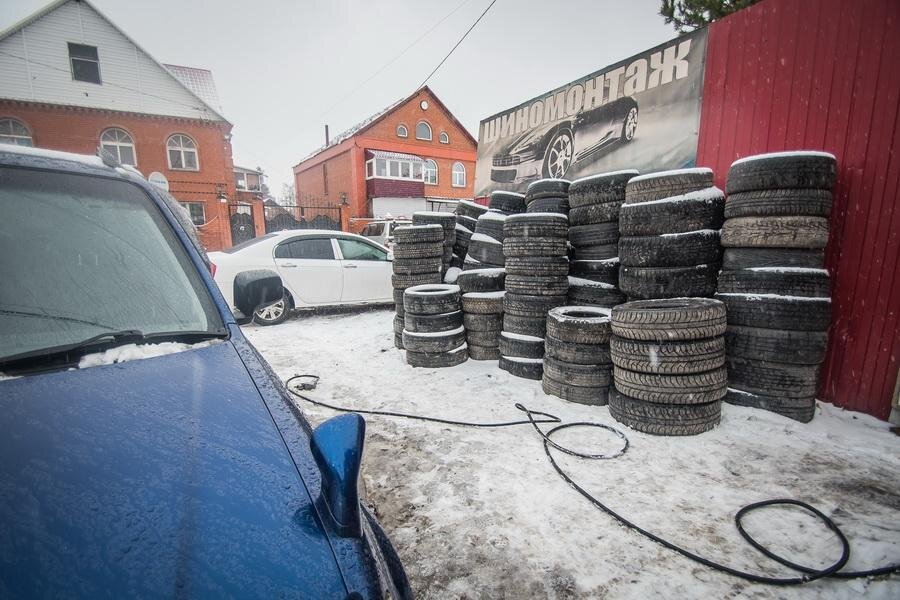 Очереди на смену резины образовались в шиномонтажках Новосибирска после снега 28 сентября