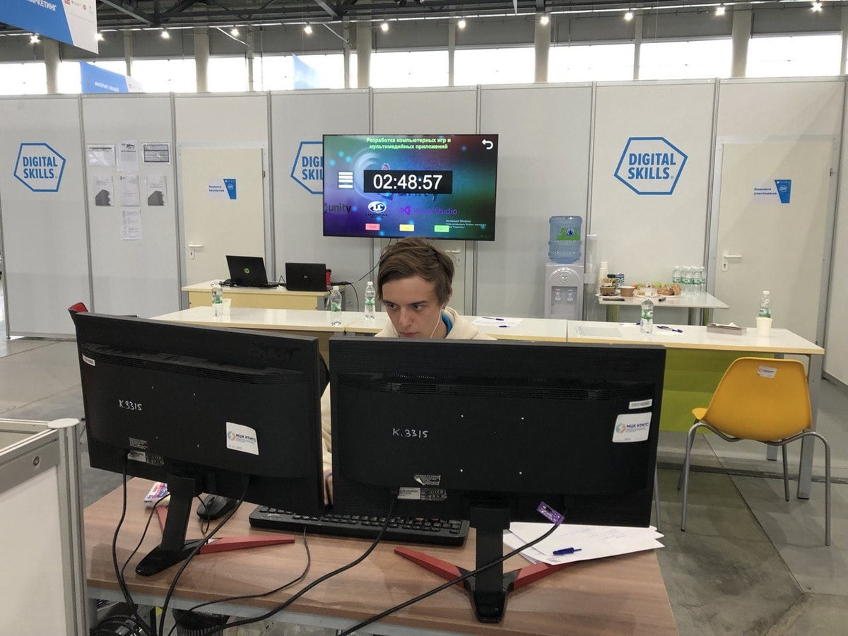 Артём Поляков стал вторым среди 280 претендентов. Третьекурсник Политехнического колледжа НовГУ Артём Поляков завоевал серебряную медаль на IV Отраслевом чемпионате в сфере информационных технологий Digital Skills 2022 в Казани. Медальон за выполнение 70% задания в компетенции «Машинное обучение и большие данные» получил первокурсник Института электронных и вычислительных систем Всеволод Шаклеин. — Основной задачей в моей компетенции было создать игру на движке Unity, — рассказал Артём Поляков. — Нам дали ресурсы – звуки, картинки, кнопки. От нас требовалось сделать интерфейс, настроить хранение данных, механику управления и анимации. Самое сложное – реализация механики: требуется продумать логику и реализовать её с помощью скриптов на языке C Sharp. С этой частью я смог справиться быстрее других. Самым лёгким стал блок реализации интерфейса – на это задание ушло около трёх часов. В первенстве принимали участие более 280 конкурсантов из 30 регионов страны: сотрудники Росатома, Ростеха,
