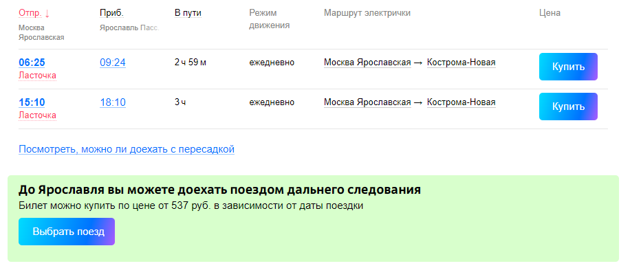 До Ярославля ходит немало проходных поездов и есть две скоростные электрички.