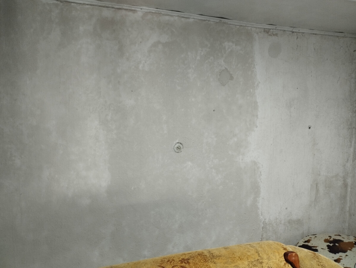 Когда-то тут была наклеен кафель. Он весь отвалился...