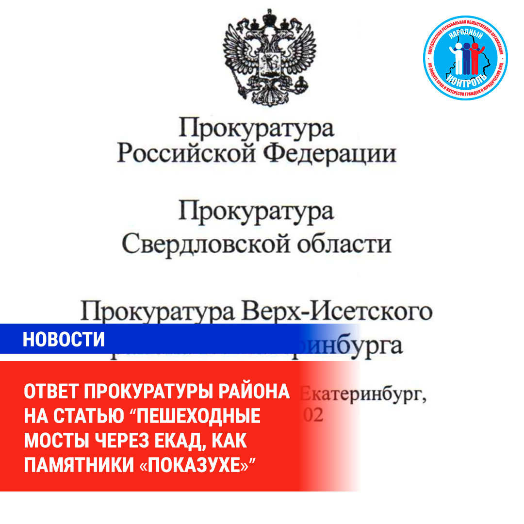 Публикуем еще один ответ по поводу статьи “Пешеходные Мосты через ЕКАД, как памятники «показухе»” (https://nk96.ru/news/peshehodnye-mosty-cherez-ekad-kak-pamjatniki-pokazuhe/). Предыдущий ответ – https://nk96.ru/news/otvet-na-statju-peshehodnye-mosty-cherez-ekad-kak-pamjatniki-pokazuhe/. "Прокуратурой Верх-Исетского района города Екатеринбурга рассмотрено обращение, поступившее из прокуратуры Свердловской области, о возможном нарушении законодательства о контрактной системе в сфере закупок товаров, работ, услуг для государственных и муниципальных нужд, законодательства о социальной защите инвалидов.