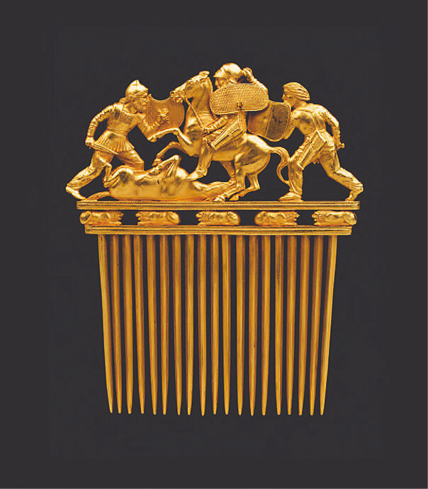 Интересный экспонат Эрмитажа, не имеющий аналогов по всему миру, - золотой гребень из кургана Солоха. Он представляет собой сцену битвы трёх скифских воинов и считается одним из самых значительных памятников эллино-скифского искусства. Но сегодня мы не будем погружаться в мир ювелирного дела древних цивилизаций, а поговорим о том, как этот гребень был найден. И при чем тут царские бастарды?