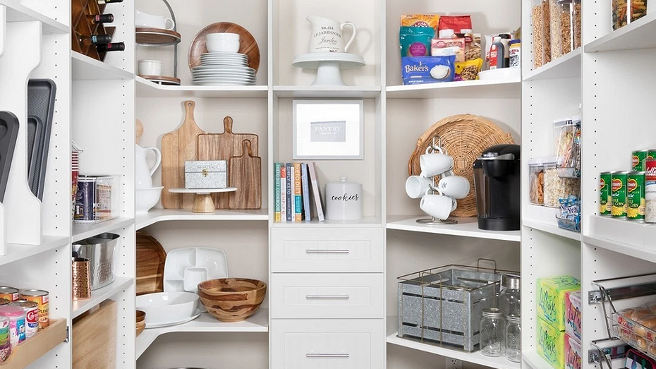Собрали примеры больших и маленьких кладовок, в которых организация хранения выглядит стильно и эстетично. 1. Стильная кладовая в духе кантри Эта небольшая кладовка, больше напоминающая шкаф, оформлена в стиле кантри. Цветовая гамма и материалы выглядят максимально естественно: дерево с ярко выраженной фактурой, глиняная посуда, плетеные корзины. Чтобы выделить как можно больше места для хранения, задействовали также верхнюю поверхность шкафа. На полках, кроме банок и других емкостей, расположили и декоративные элементы: например, керамические тыквы и поднос. 2. Лаконичная кладовая в светлых тонах Хранение на открытых полках в этой светлой кладовой оформлено лаконично. Аксессуары выбраны в той же цветовой гамме, что и краска на стенах. Прозрачные стенки емкостей позволяют быстро понять, что и где хранится, к тому же они выглядят очень легко и не перегружают небольшое пространство кладовки. 3. Кладовка с открытым хранением Все хранение в этой просторной кладовой представлено открытыми п