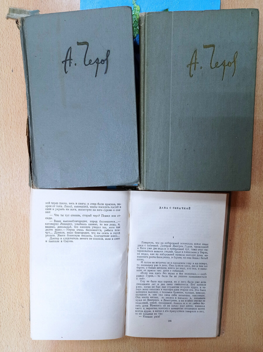 «Говорили, что на набережной появилось новое лицо: дама с собачкой. Дмитрий Дмитрич Гуров, проживший в Ялте уже две недели и привыкший тут, тоже стал интересоваться новыми лицами. Сидя в павильоне у Верне, он видел, как по набережной прошла молодая дама, невысокого роста блондинка, в берете: за нею бежал белый шпиц».
