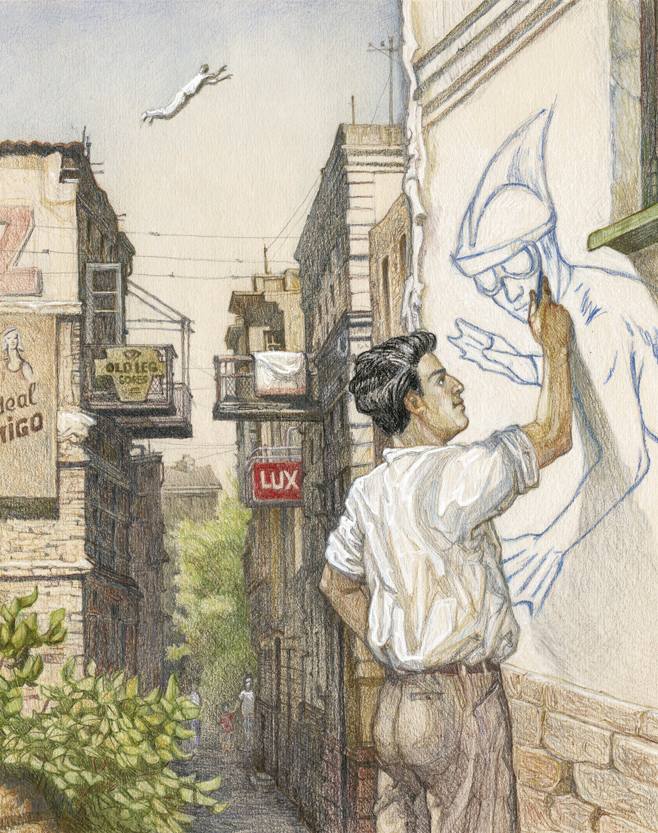 У отца не было за спиной изошколы, но рисовал он с детства. К празднику 1 Мая все домики в их старом районе белили, и молодой папа не мог пройти мимо – рисовал на стенах огромные картины, что-то вроде нынешних граффити. Когда на экраны вышел фильм «Человек-амфибия», он изобразил на стене гигантского Ихтиандра и такую же Гуттиэре, ожидающую возлюбленного. Соседка тетя Маруся не прониклась и сдала художника участковому: «Хватит портить стены!» Пришлось всё перекрасить.