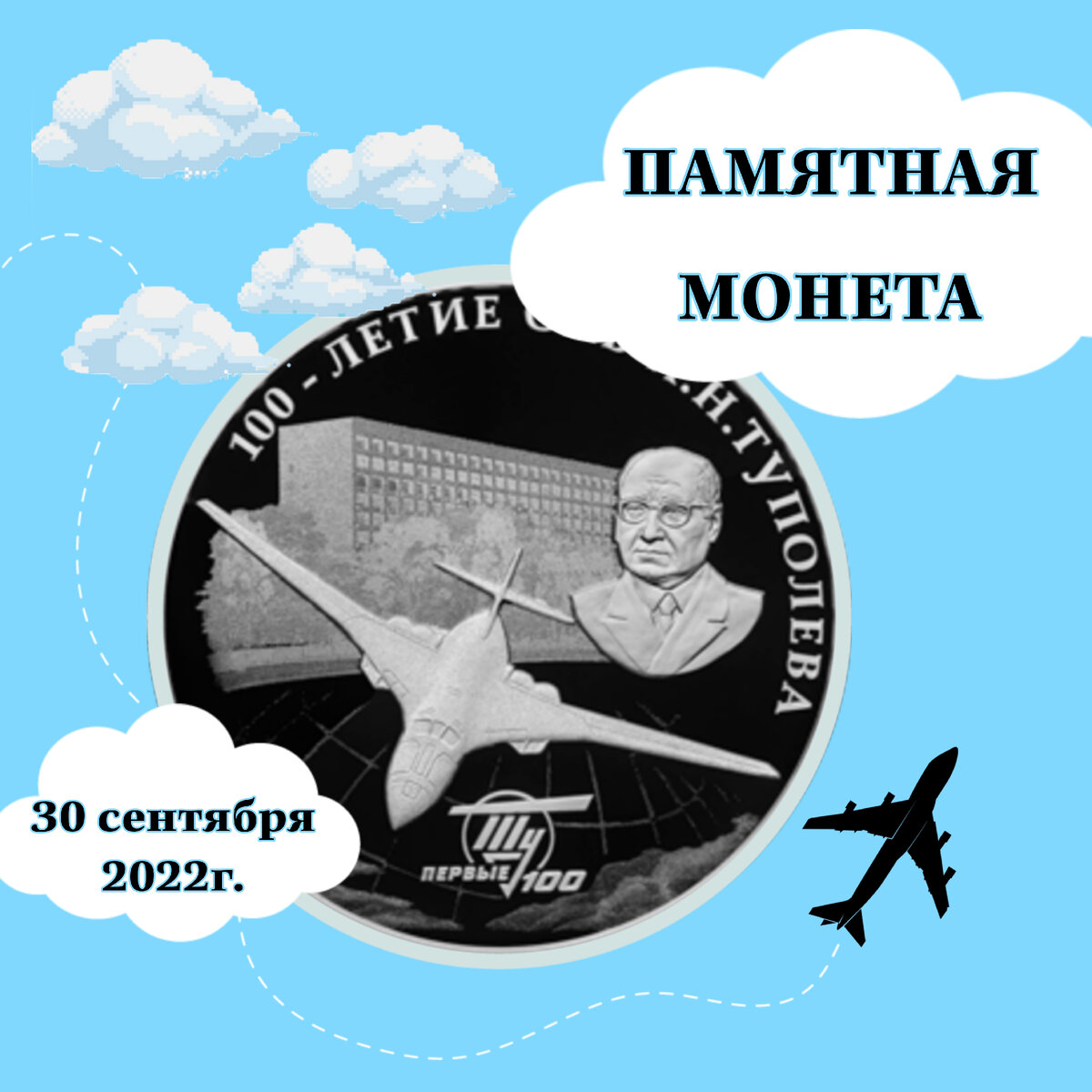 Центральный банк выпустил памятную монету, посвящённую 100-летию авиационного опытно-конструкторского бюро А.Н.Туполева.
